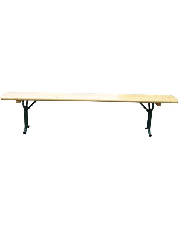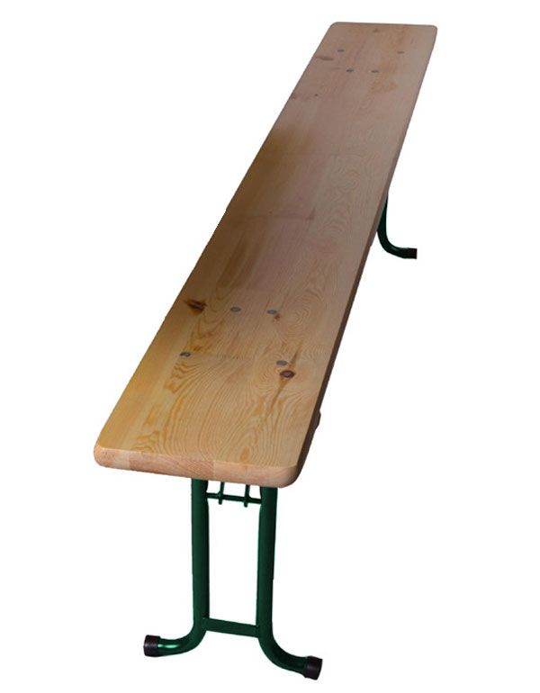 Le banc Bavière pliant complète parfaitement les tables Bavière pour l’accueil du public. Réalisé avec un plateau en pin massif poncé et verni haute résistance, il repose sur un piètement en cornière métallique vert offrant une excellente stabilité, même sur terrains extérieurs irréguliers. Pliant, robuste et sécurisé par loquet, ce banc est parfaitement adapté à l’usage intensif des collectivités, en intérieur comme en extérieur.