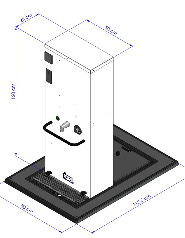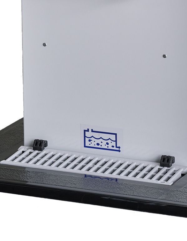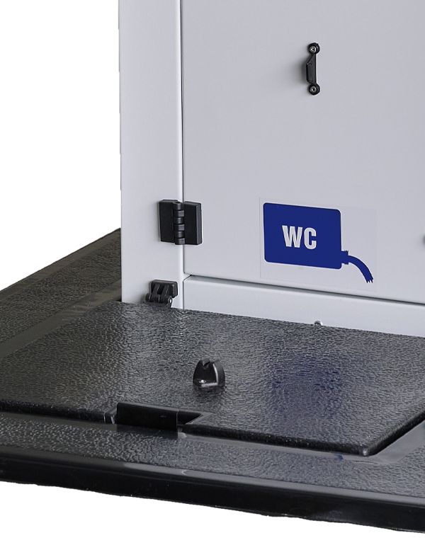 Trappe de vidange WC avec rinçage intégré par 4 buses d’eau (débit 30 L/min – durée 20 sec.).