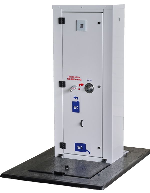 Un robinet de rinçage pour WC cassette (débit 4 L/min – durée 20 sec.) avec antiblocage intégré.