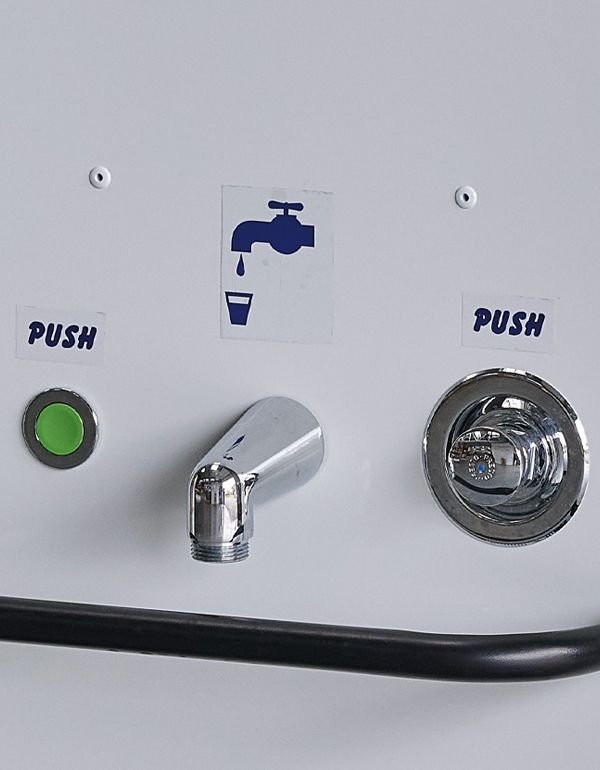 Un robinet d'alimentation eau potable (débit 10 L/min – durée 30s) protégée par une isolation thermique via un kit antigel équipé d'un thermostat.