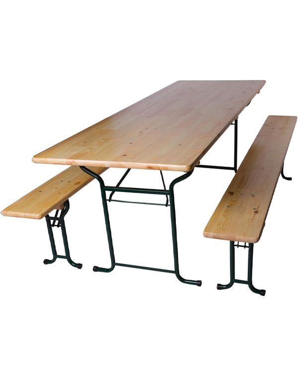 L’ensemble Bavière est une référence du mobilier événementiel pour les collectivités. Composé d’une table pliante et de bancs assortis en pin massif, il est conçu pour résister à un usage intensif en intérieur comme en extérieur. Son piètement en cornière métallique verte, garantit une excellente stabilité, y compris sur terrains irréguliers tels que pelouse ou gravier. Pratique, robuste et intemporel, cet ensemble s’adapte à de nombreux formats d’événements.