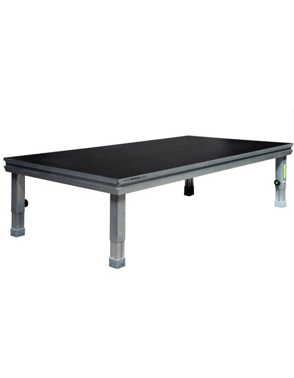 Plateau de scène professionnel en aluminium avec surface pastillée antidérapante, conçu pour une utilisation intérieure ou extérieure. Léger, robuste et compatible avec tous les accessoires Quick, il s’adapte parfaitement aux scènes modulaires des collectivités.