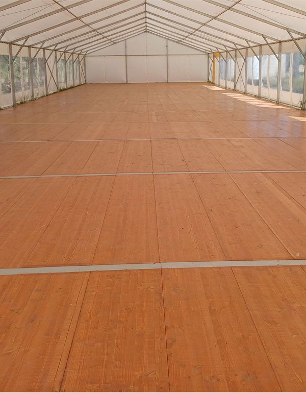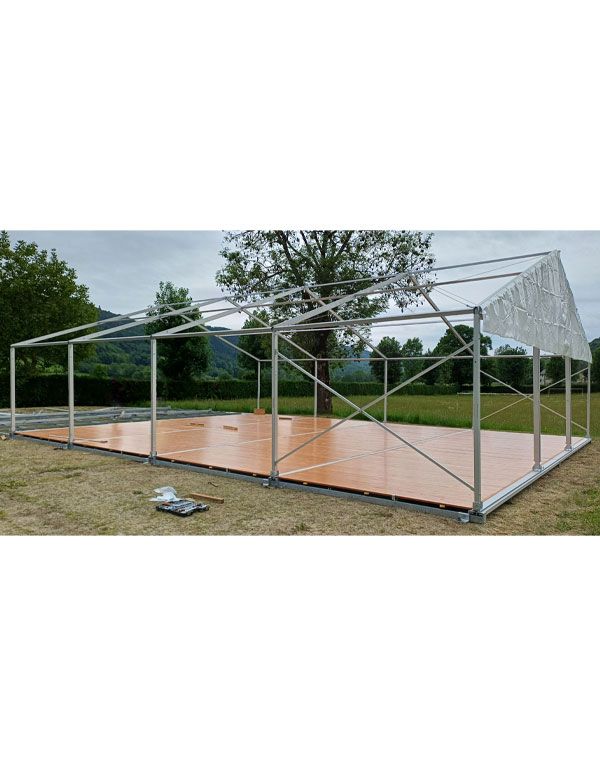 Composez votre plancher idéal grâce à une structure modulable par travées de 5 m. Une solution simple, évolutive et parfaitement adaptée à toutes les configurations de chapiteaux.
