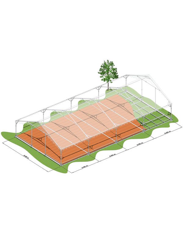 D'utilisation identique au modèle Plein Air, la Super Plein Air est en largeur 8 m. Les jonctions entre les tentes peuvent être effectuées par des gouttières latérales ou de fronton en toile polyester enduit PVC.