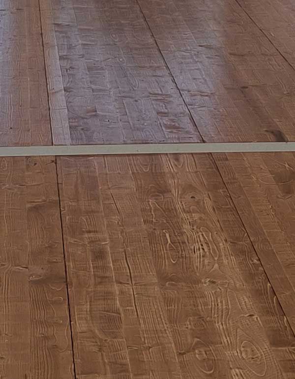 - Finition verni imprégné à chaud, lames montées sur lambourde en bois dur.