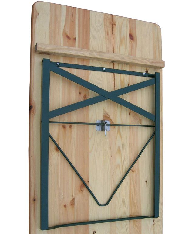 Table pliante 200x70 cm en pin poncé, dessus verni à haute résistance.