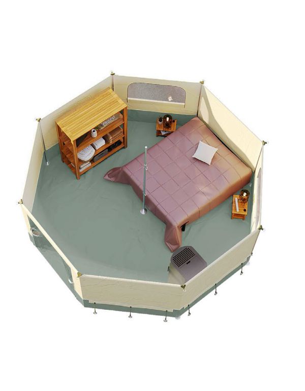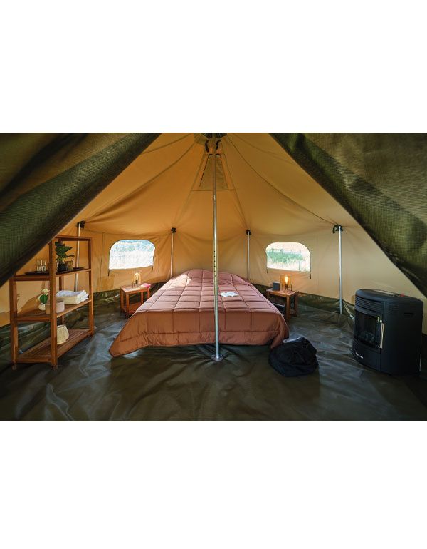 La tente yourte Steppe est conçue pour créer un espace d’hébergement convivial et modulable, adapté aux séjours en collectivités. Son architecture circulaire maximise le volume intérieur et offre un espace agréable pour dormir, se réunir.