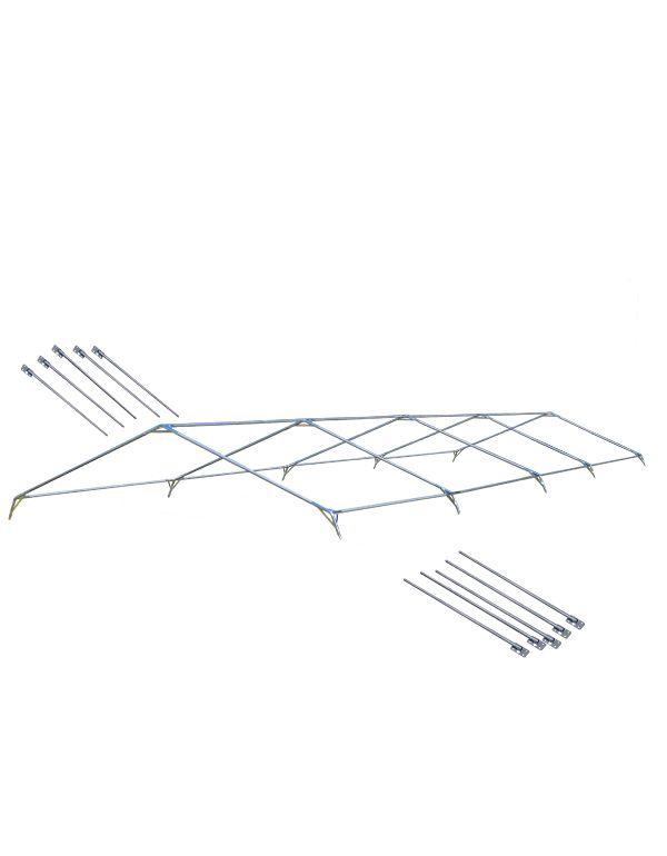 Armature en acier galvanisé ø 30 mm pour tente marabout Polyluxe 1100. Renforcée par des angles en fer plat, elle offre une structure fiable et durable. Fabrication française.