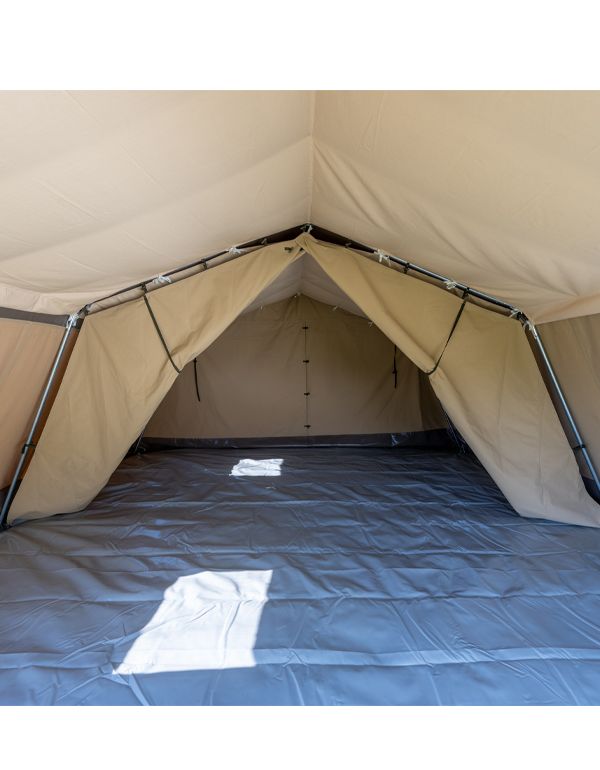 Vélum intérieur en toile polyester beige M1, spécialement conçu pour la tente Marabout Polyluxe 550. Il améliore le confort, l’esthétique et la sécurité intérieure grâce à sa finition soignée et son traitement ignifugé conforme à la norme M1. Idéal pour les usages collectifs intensifs.