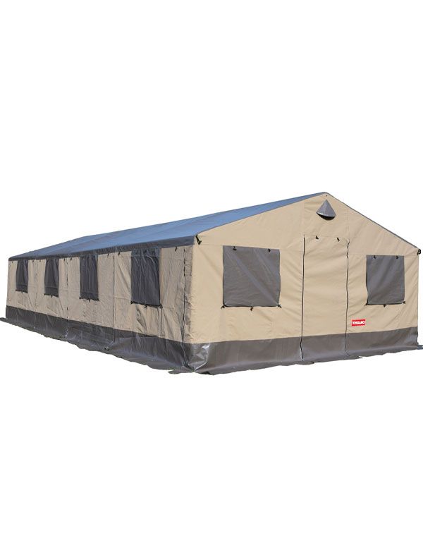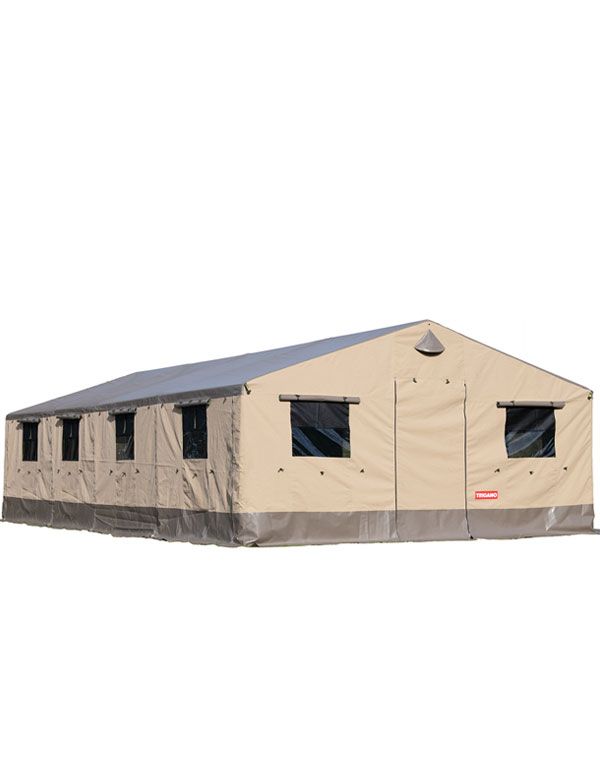Les murs relevables, associés aux fenêtres moustiquaires, assurent une ventilation uniforme et agréable même lorsqu’un grand nombre d’occupants partage l’espace. Cette capacité en fait une solution de couchage collectif haut volume, particulièrement appréciée des centres de vacances et camps fixes.