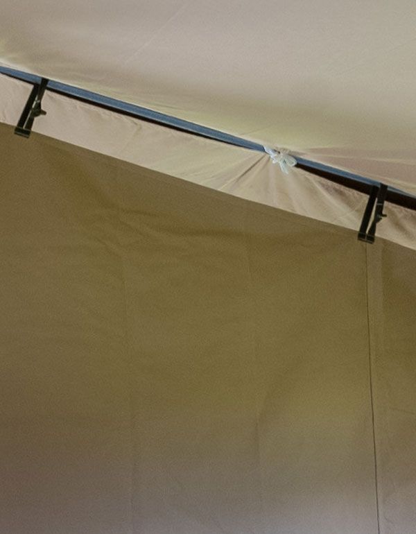 Cloison intérieure pour tentes marabout Aquitaine, en polycoton 3I 540 g/m² classé M2, coloris Safari. Idéale pour créer des espaces séparés (chambres, zones de rangement ou d’activités). Fixation simple sur l’armature par sangles à cabillots et fermeture par cabillots. Livrée avec sac de rangement.