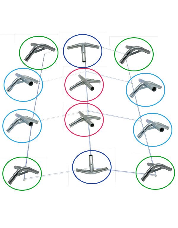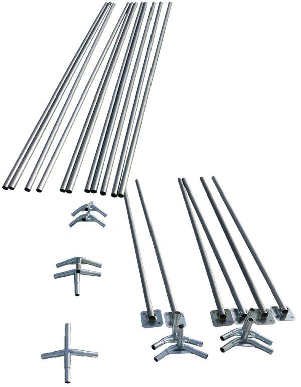 8 tubes en acier galvanisé ø 40 mm, épaisseur 2 mm + semelles plates 4 trous
